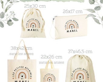 Large "Little Business" pouch with sliding ties personalized with the first name of your choice 100% cotton 25X30 cm