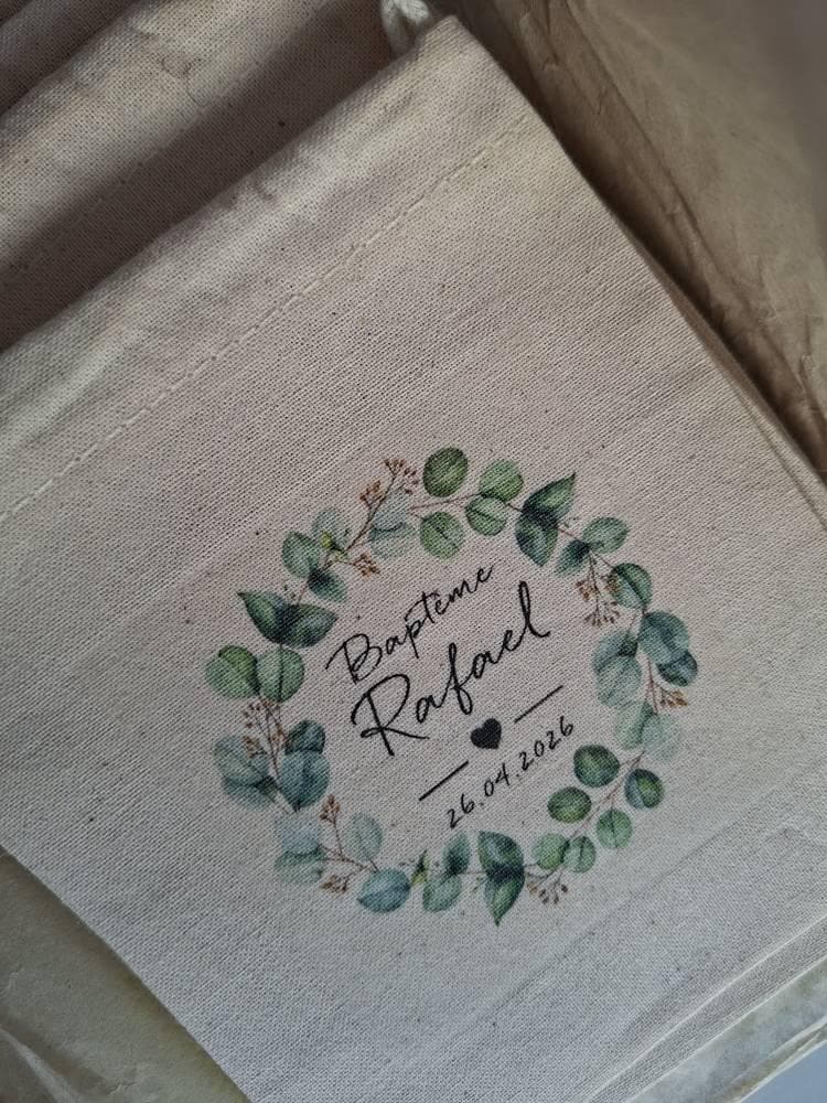 ★ Pochons à dragées ou cadeaux en coton personnalisés pour cérémonie aux prénoms, date de votre choix ★